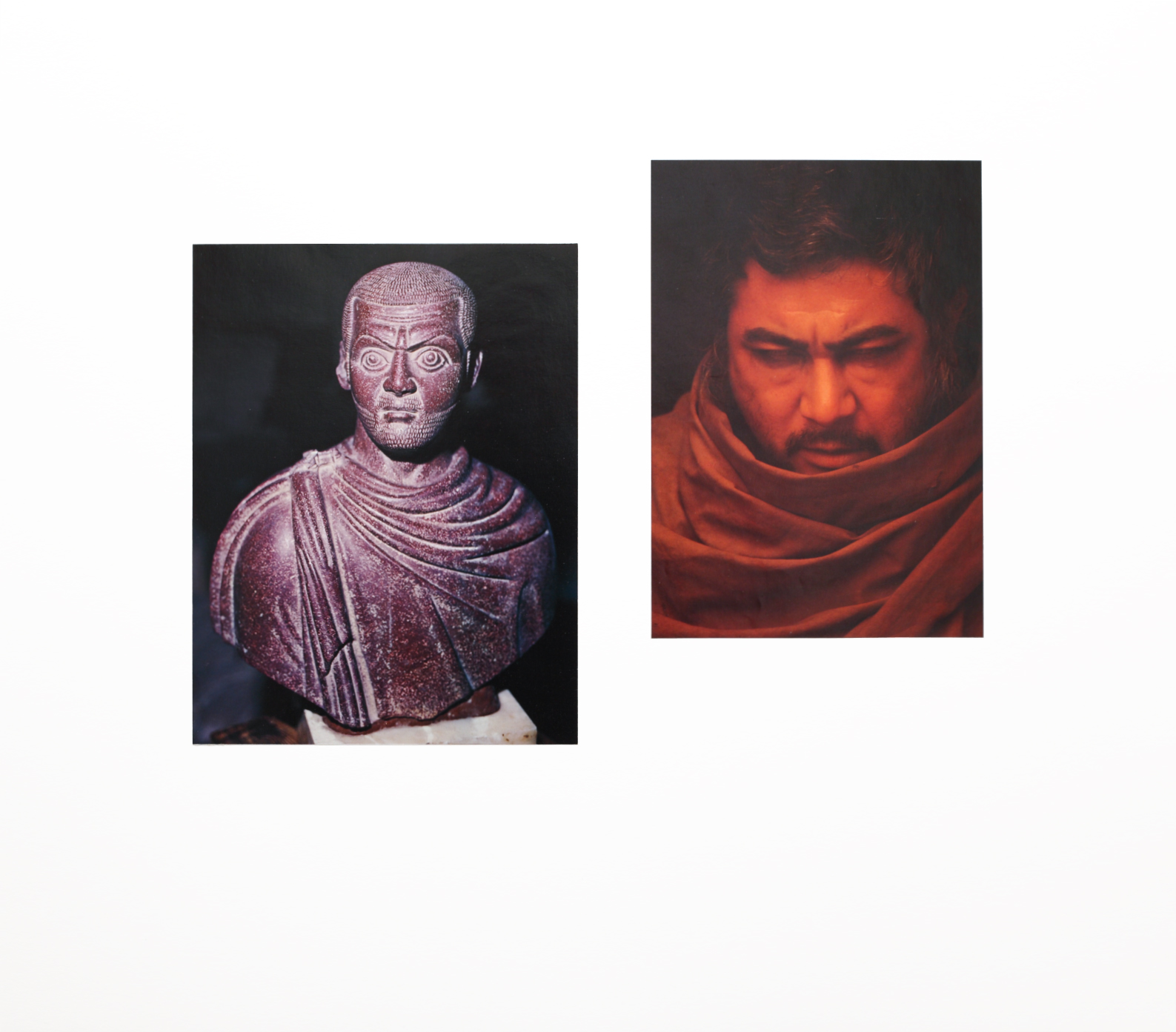 Adhesive on illustration board. Images from salvaged volumes on great museums of the world paired with images from salvaged directory of commercial photographers.